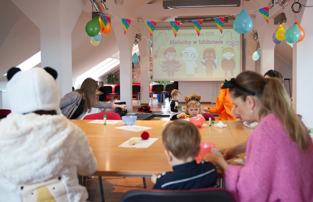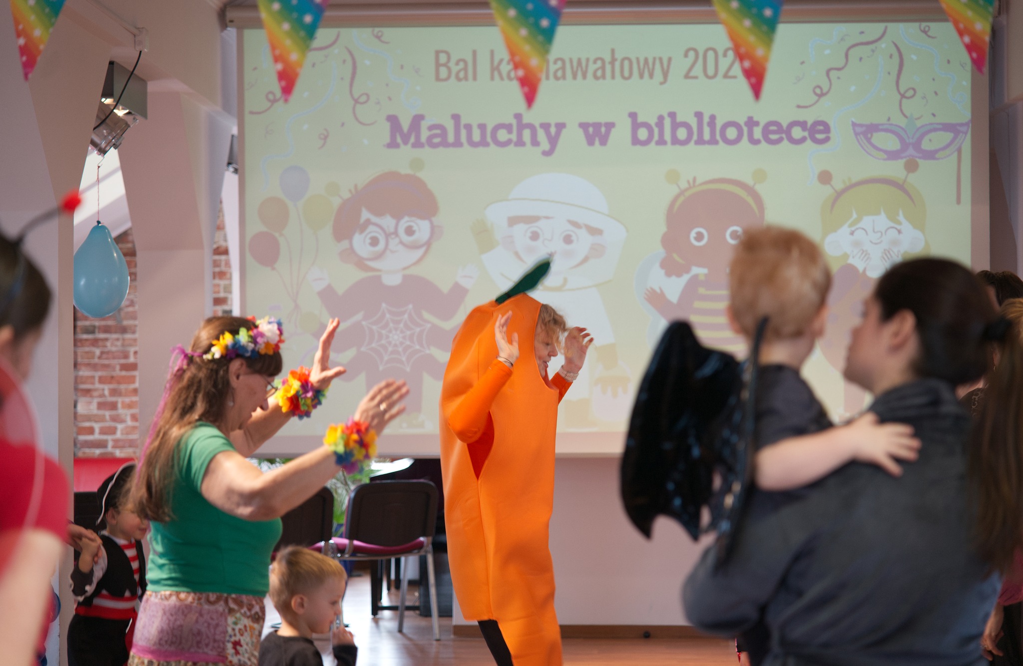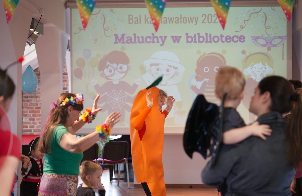 Biblioteka na jeden dzień zmieniła się w barwną krainę wyobraźni, w której rządziły kostiumy, śmiech i dziecięca radość. Tegoroczny bal karnawałowy dla najmłodszych czytelników przyniósł prawdziwą feerię postaci, pojawili się piraci, biedronki, czarownice, superbohaterowie, pszczółki, tygryski, a nawet Marchewka, która skradła serca uczestników. Atmosfera była pełna energii i swobody, a parkiet ani na chwilę nie pozostawał pusty.