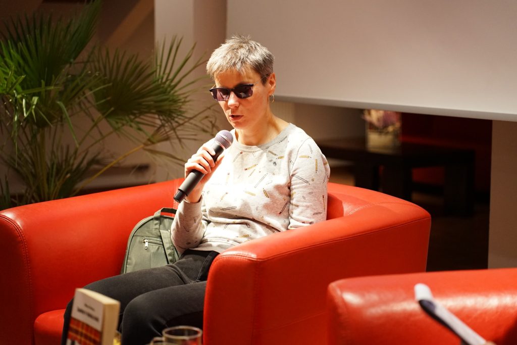 Rozmowę prowadziła Kasia Smardzewska. Bibliotekarka pytała m.in. o niezależność, samodzielność w podróżach oraz o pasję do kolei, która od lat towarzyszy autorce.