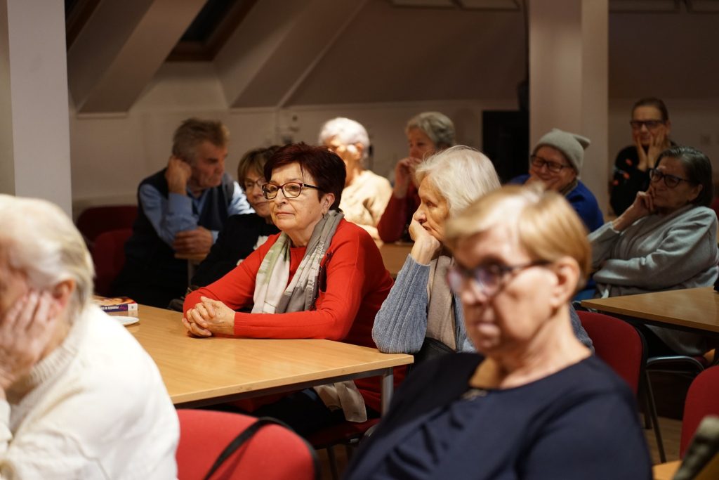 Pojawiły się także wątki osobiste, wspomnienia z dzieciństwa, historie związane z hobby, między innymi jazdą tandemem i odkrywaniem nowych miejsc. Każda opowieść niosła anegdotę, lekką w formie, a jednocześnie odsłaniającą ważny fragment doświadczeń pisarki. Humor przeplatał się z refleksją, dzięki czemu publiczność słuchała z uśmiechem, ale i z uważnością.