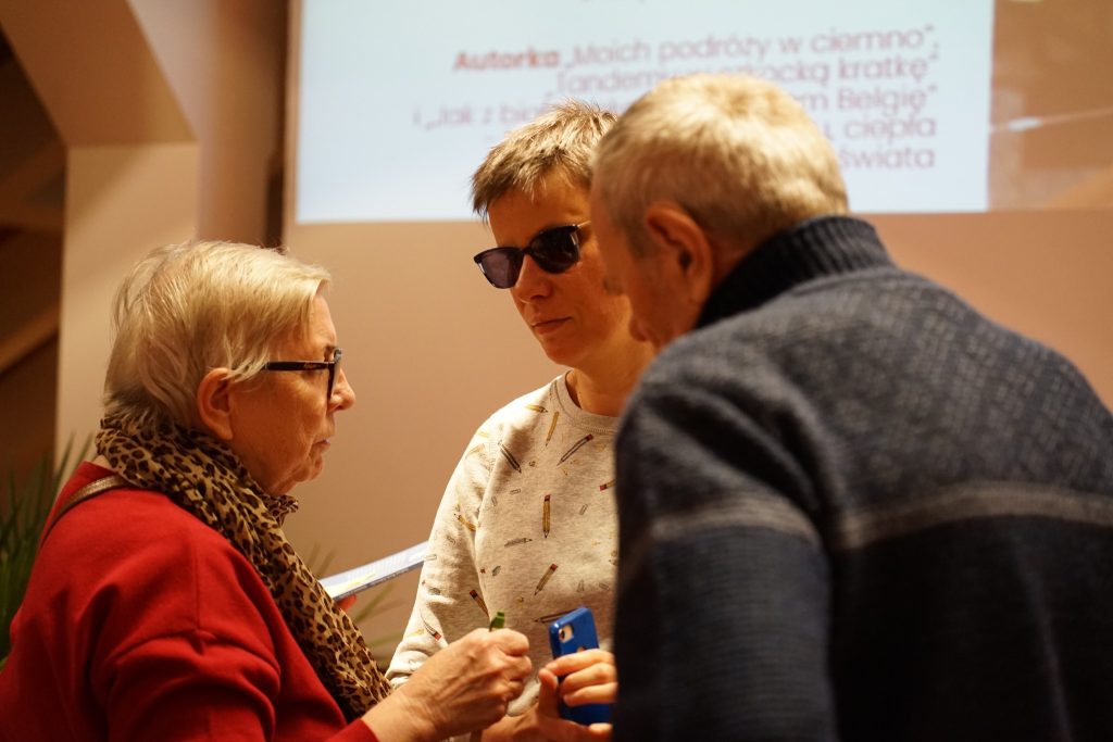W drugiej części spotkania pojawiło się wiele pytań z sali. Uczestnicy dopytywali między innymi o to, jak przekuć pasję w zajęcie przynoszące dochód, o oczekiwania osób widzących wobec niewidomych, a także o naukę matematyki i codzienne funkcjonowanie. Był to moment żywej rozmowy, w której czytelnicy dzielili się również własnymi historiami i doświadczeniami, tworząc atmosferę prawdziwego dialogu.