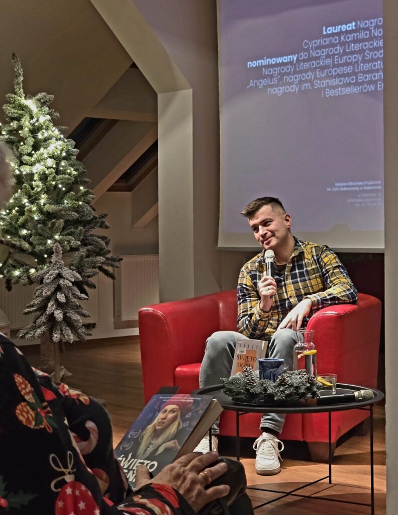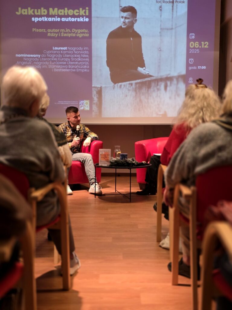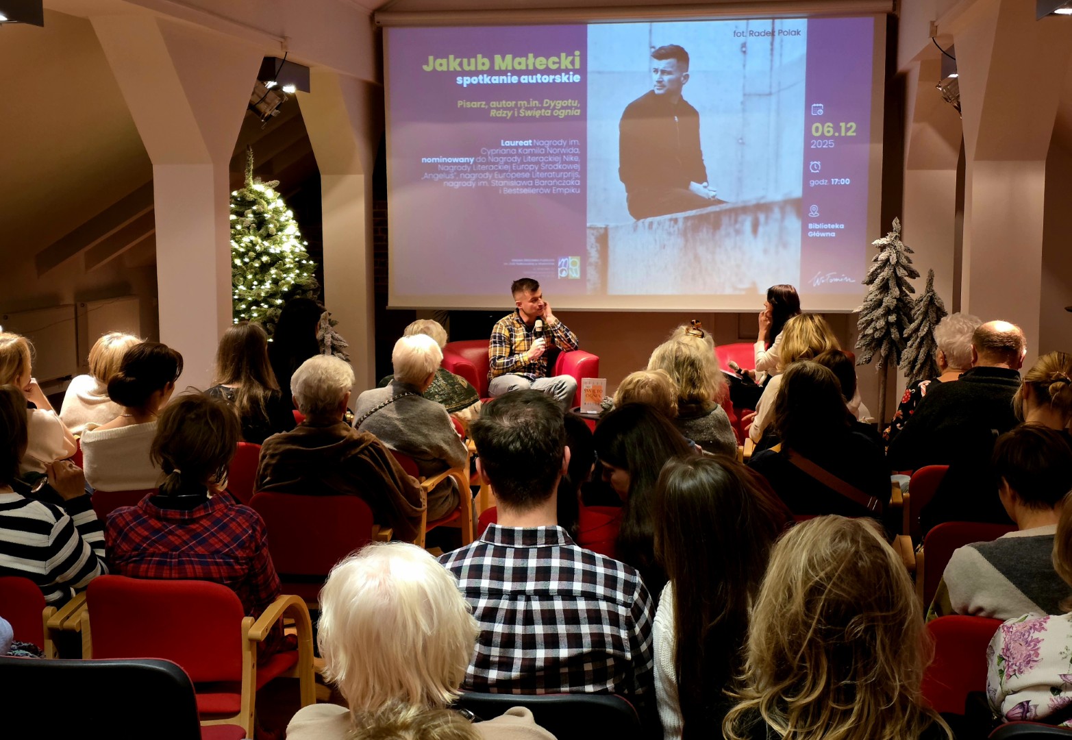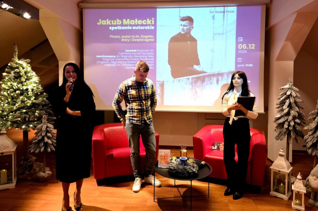 Spotkanie autorskie z Jakubem Małeckim było jednym z tych wydarzeń, po których wychodzi się lżejszym i jednocześnie bogatszym o kilka nowych myśli. Autor okazał się naszym Mikołajem nie tylko z kalendarza, lecz przede wszystkim z ducha, bo obdarowywał opowieściami z niebywałą swobodą i życzliwością.