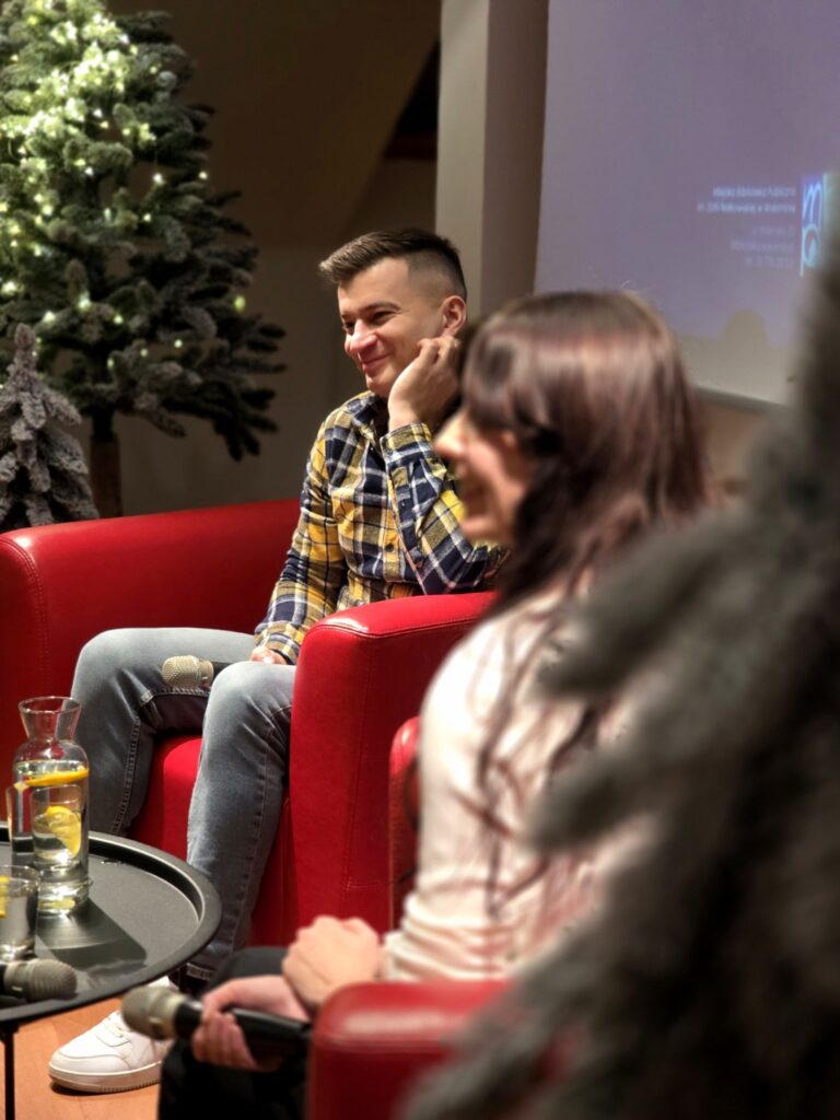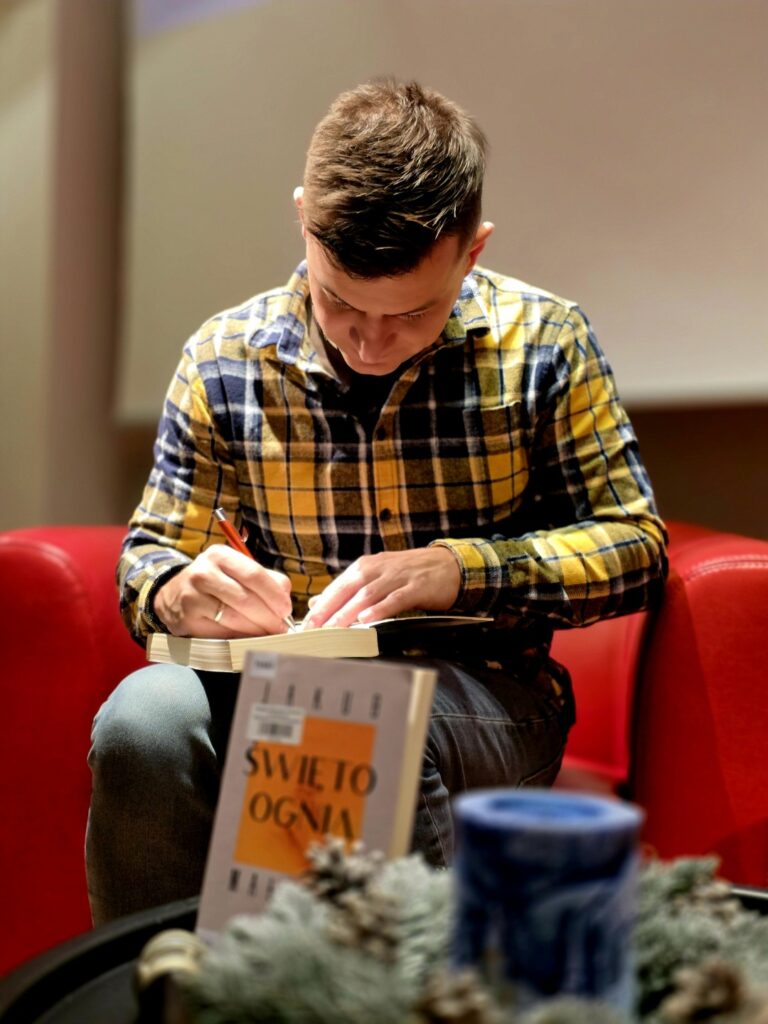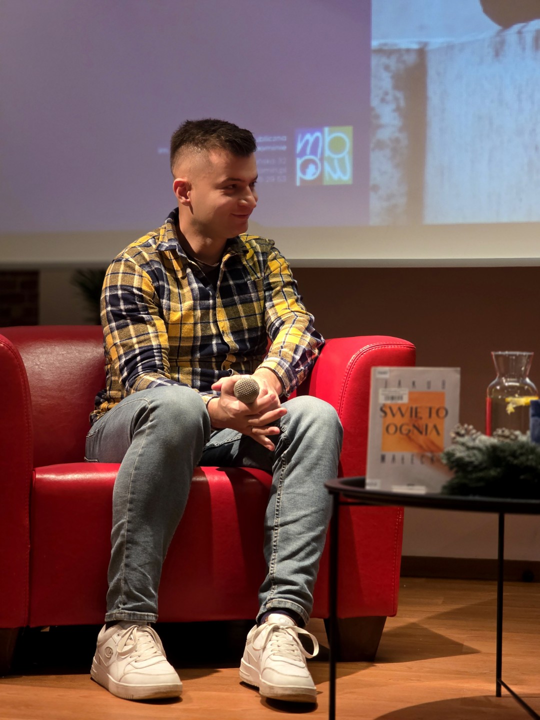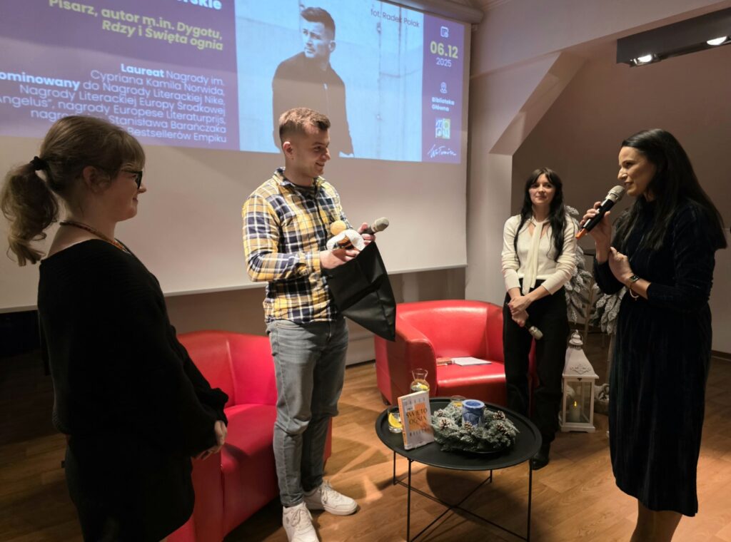 Spotkanie autorskie z Jakubem Małeckim było jednym z tych wydarzeń, po których wychodzi się lżejszym i jednocześnie bogatszym o kilka nowych myśli. Autor okazał się naszym Mikołajem nie tylko z kalendarza, lecz przede wszystkim z ducha, bo obdarowywał opowieściami z niebywałą swobodą i życzliwością.