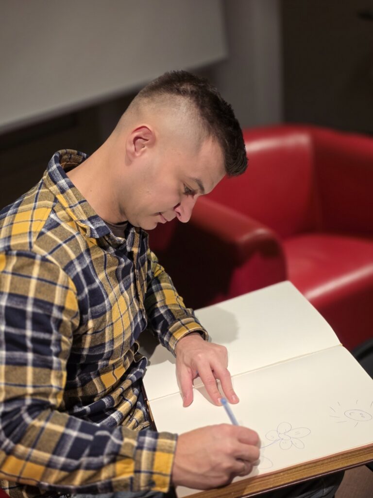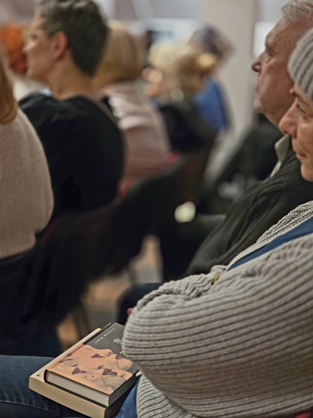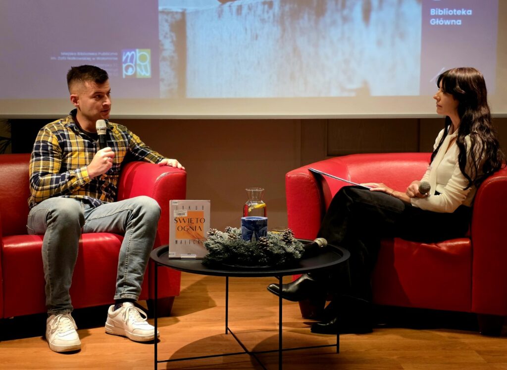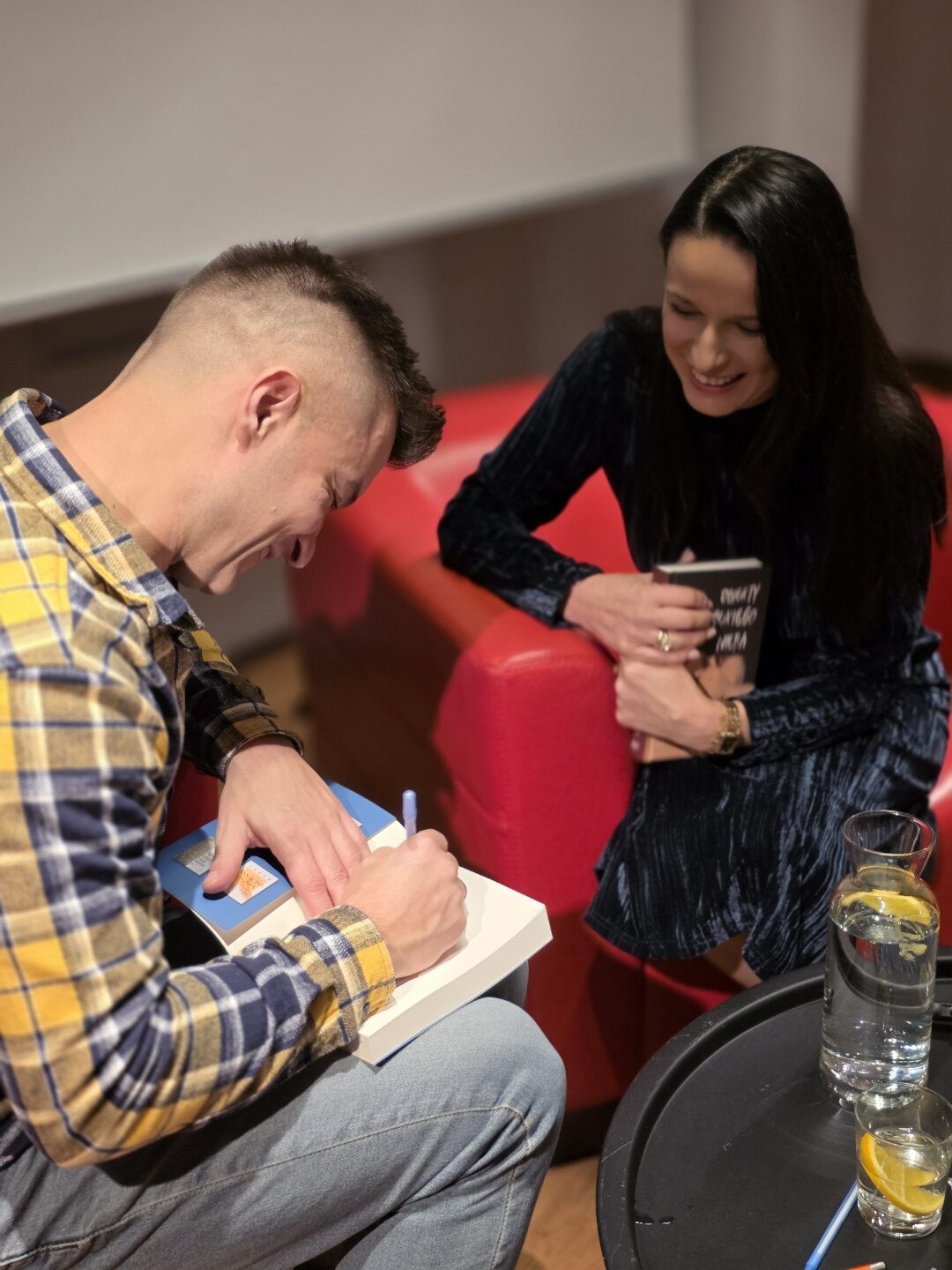 Spotkanie przebiegało w atmosferze pełnej spokoju, humoru i autentyczności. Debiutująca w nowej roli Monika Kostrzewa poprowadziła je z dużą pewnością i wyczuciem, a jej pytania otwierały autorowi przestrzeń do ciekawych i szczerych odpowiedzi. Publiczność szybko podchwyciła ten ton, dzięki czemu rozmowa nabrała naturalnej swobody, a Jakub Małecki z widoczną chęcią dzielił się kolejnymi historiami.