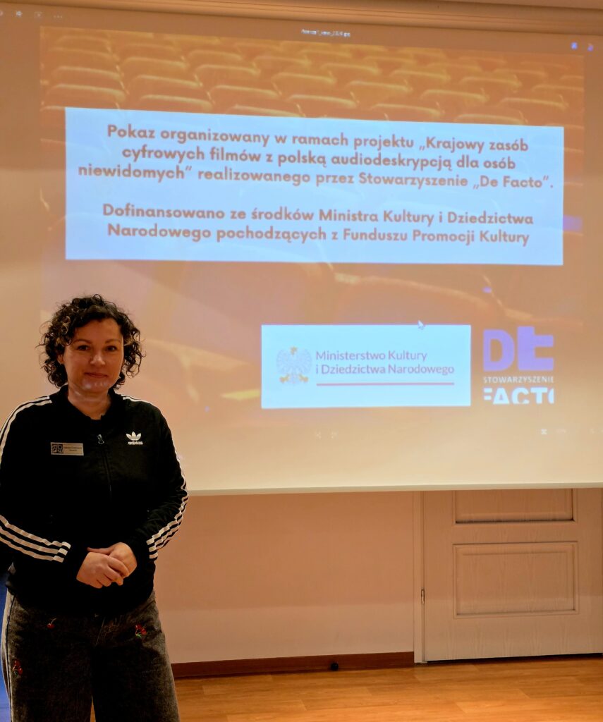Pokaz organizowany jest w ramach projektu „Krajowy zasób cyfrowych filmów z polską audiodeskrypcją dla osób niewidomych” realizowanego przez Stowarzyszenie „De Facto”