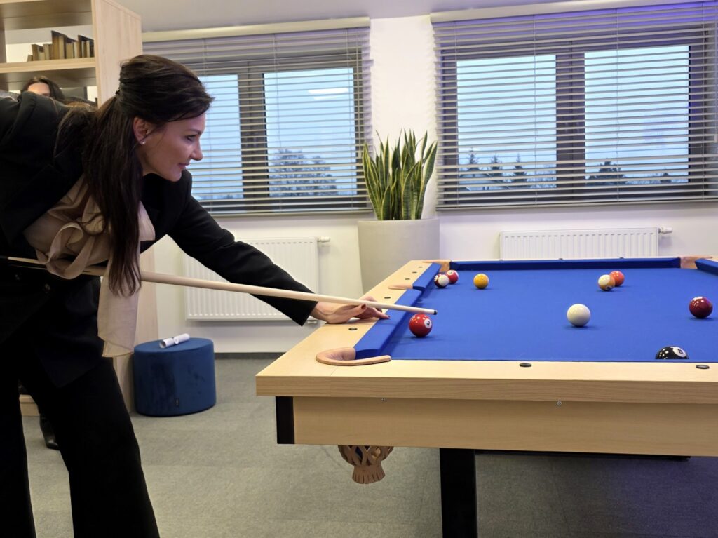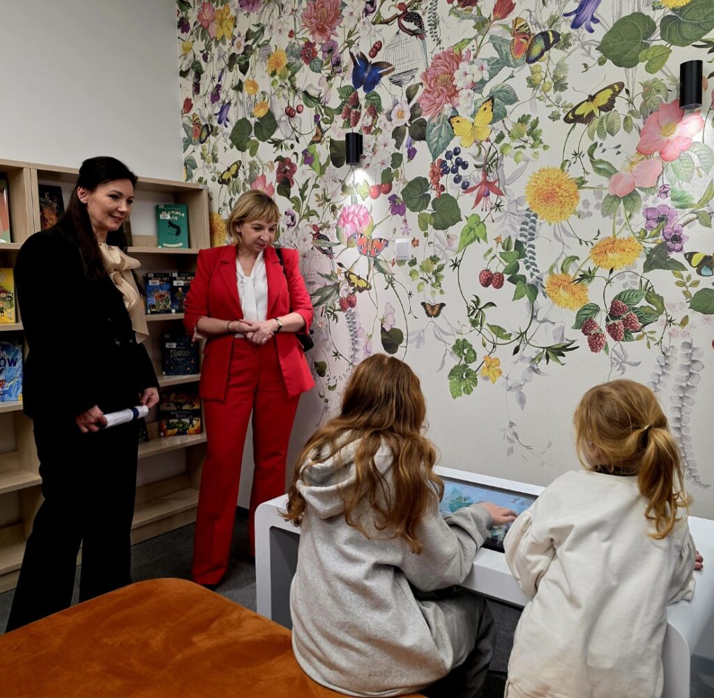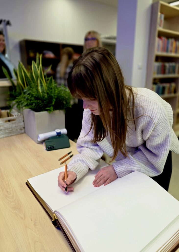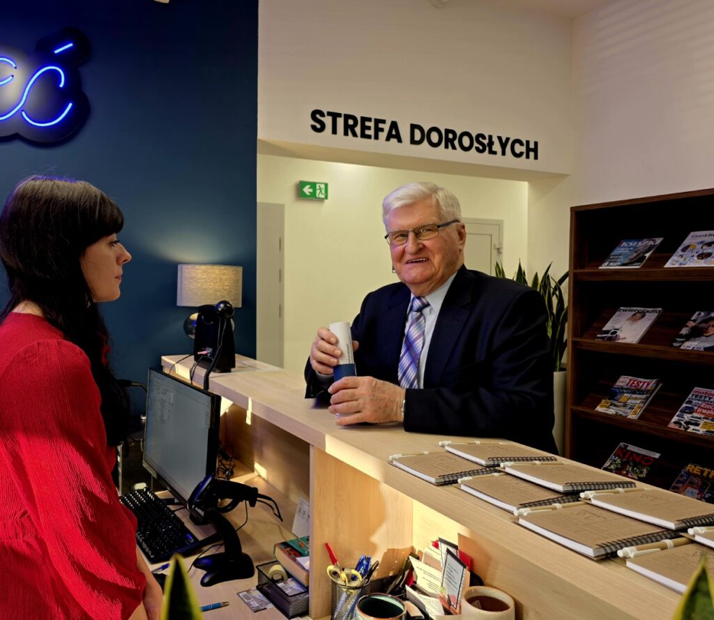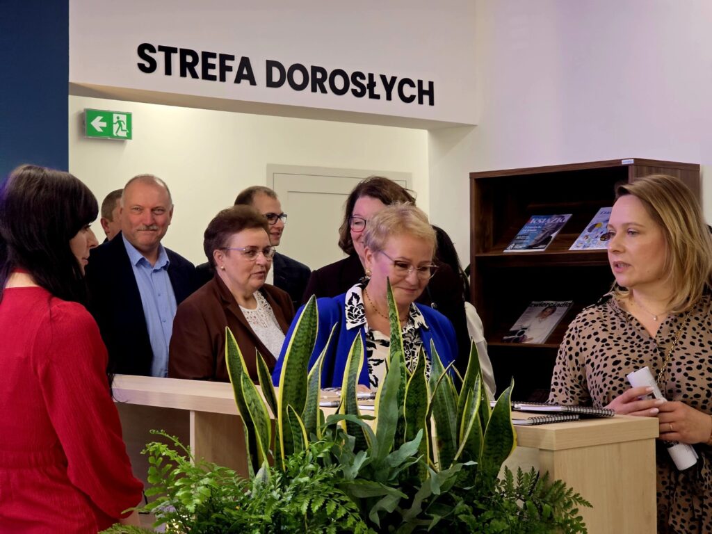 Na zakończenie przenieśliśmy się na piętro, gdzie goście mogli zobaczyć, jak finalnie wygląda biblioteka, zagrać w bilard, napić się herbaty w strefie malucha, a także zapisać się jako pierwsi czytelnicy w nowym miejscu, wypożyczać książki, skorzystać ze strefy majsterkowiczów oraz z przestrzeni i rozrywki przygotowanej dla młodzieży.