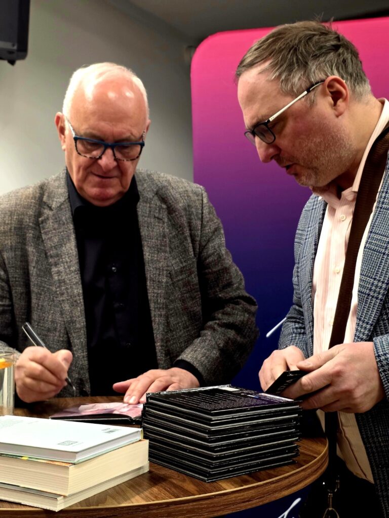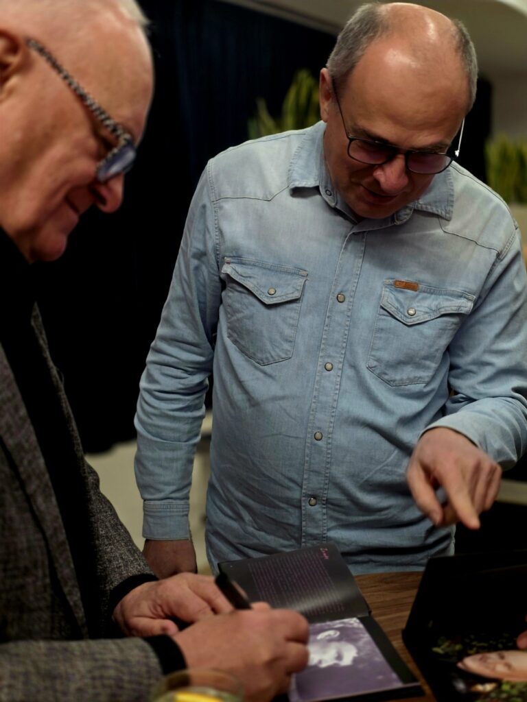 Po spotkaniu ustawiła się długa kolejka po pamiątkowe zdjęcia i autografy w książkach oraz na płytach, każdy wyszedł z dedykacją. Cieszymy się również, że nasz gość zechciał zwiedzić bibliotekę i że nowa przestrzeń przypadła mu do gustu. Z przyjemnością zapraszamy obu Panów ponownie.