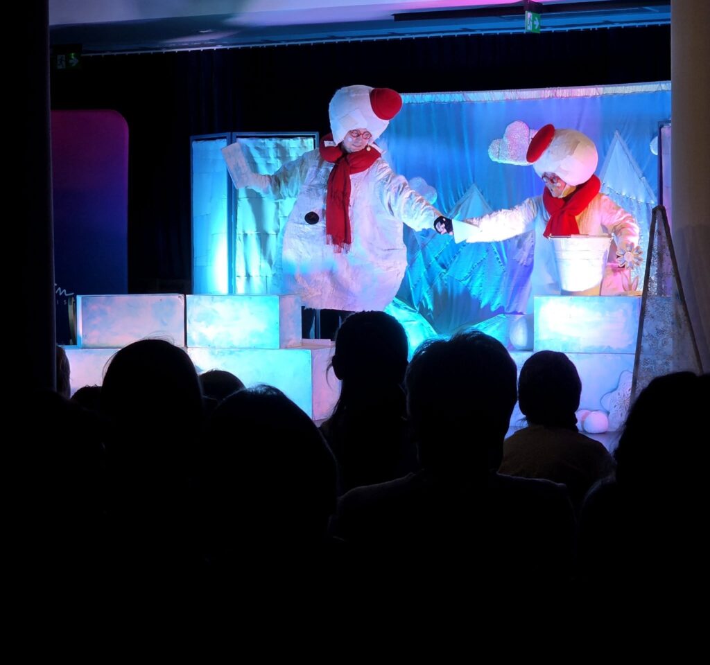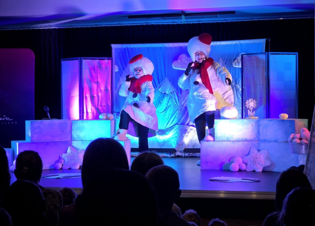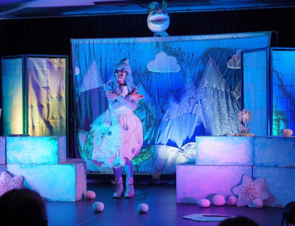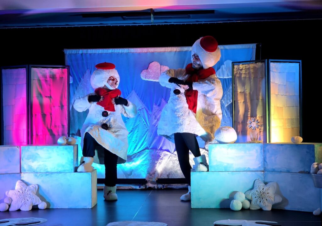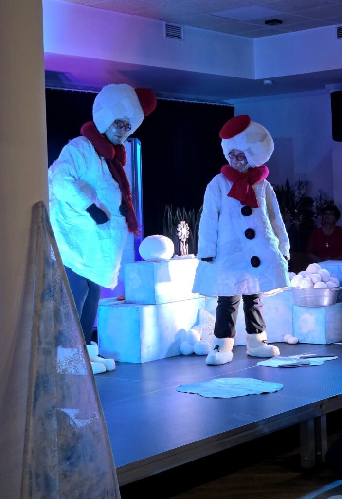 Na scenie pojawiły się Bałwanki Puch i Buch, bohaterowie ulepieni ze śniegu, którzy doskonale wiedzą, jak wypełnić zimowy czas zabawą. Towarzyszyli im radiowi spikerzy, Pingwinki Ping i Win, nadający z Radio Zimowisko pilne komunikaty o klimacie i tajemniczych śladach na śniegu. Pytania mnożyły się szybciej niż płatki śniegu, a odpowiedzi prowadziły prosto do refleksji o zmianach klimatu i o tym, co każdy z nas może zrobić, by im przeciwdziałać. Wszystko podane z humorem, lekkością i dużą porcją interakcji z publicznością.