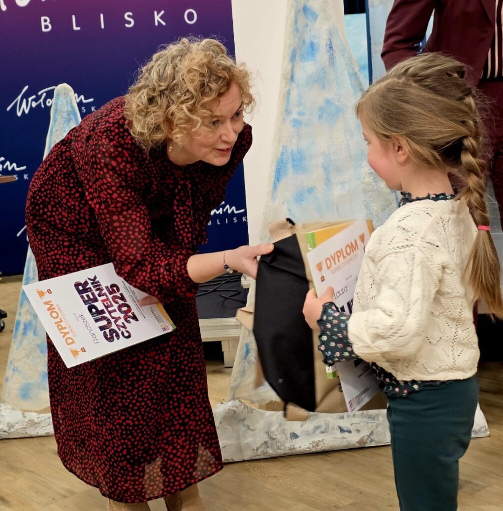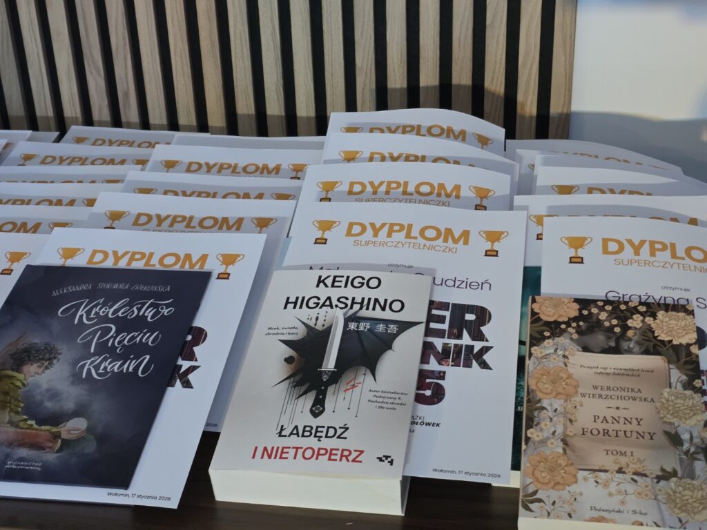 Dyplomy wręczała dyrektor biblioteki, Izabela Bochińska, nie kryjąc słów uznania dla naszych czytelników, a książkowe upominki przekazywała Edyta Babicka – Radna Rady Miejskiej w Wołominie . Na uczestników czekały także praktyczne plecaki na biblioteczne zbiory oraz pamiątkowe przypinki, bo Superczytelnik zasługuje na odpowiednią oprawę.