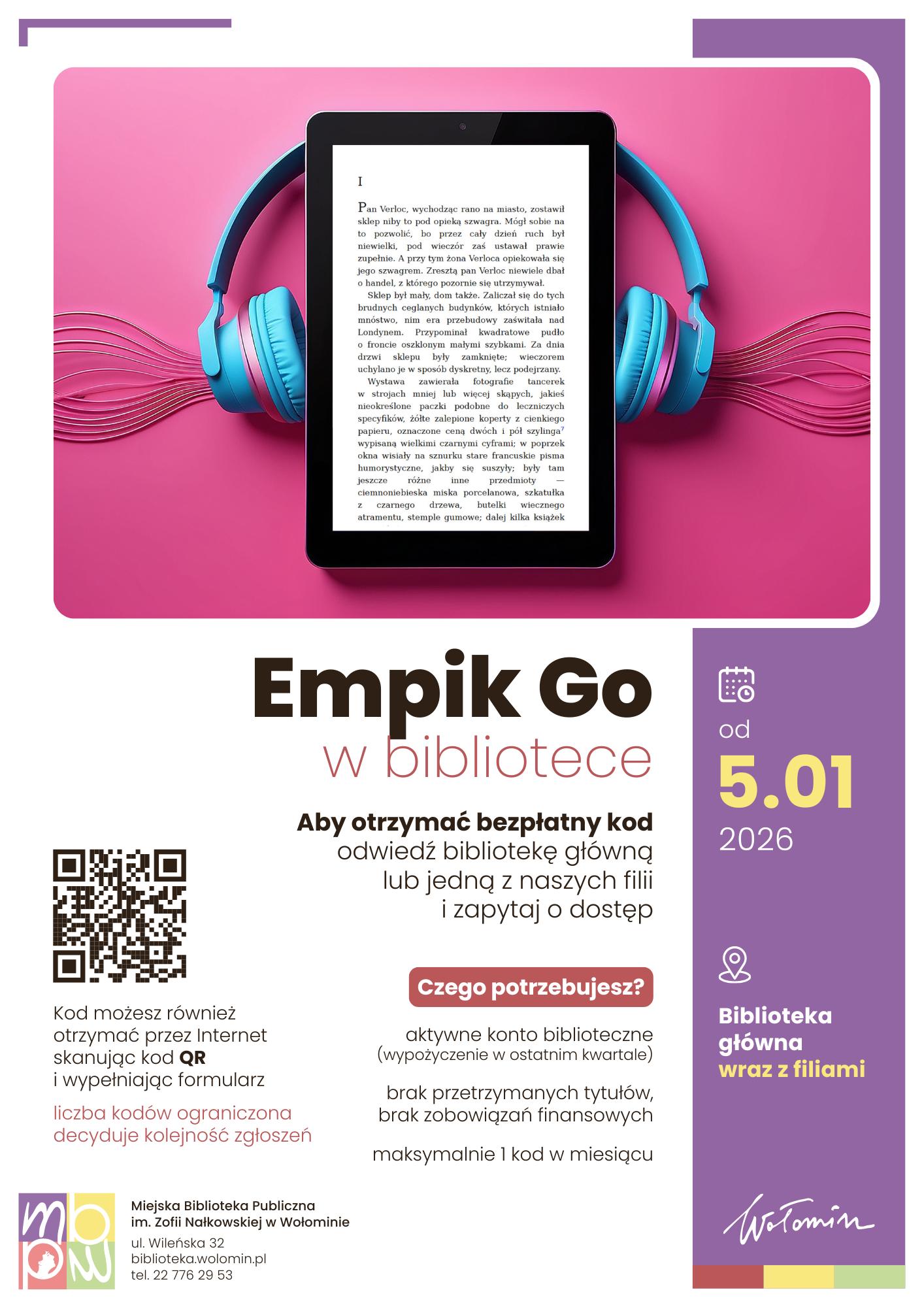 3. Kody wydawane są bezpłatnie i przeznaczone dla Czytelników spełniających równocześnie warunki: