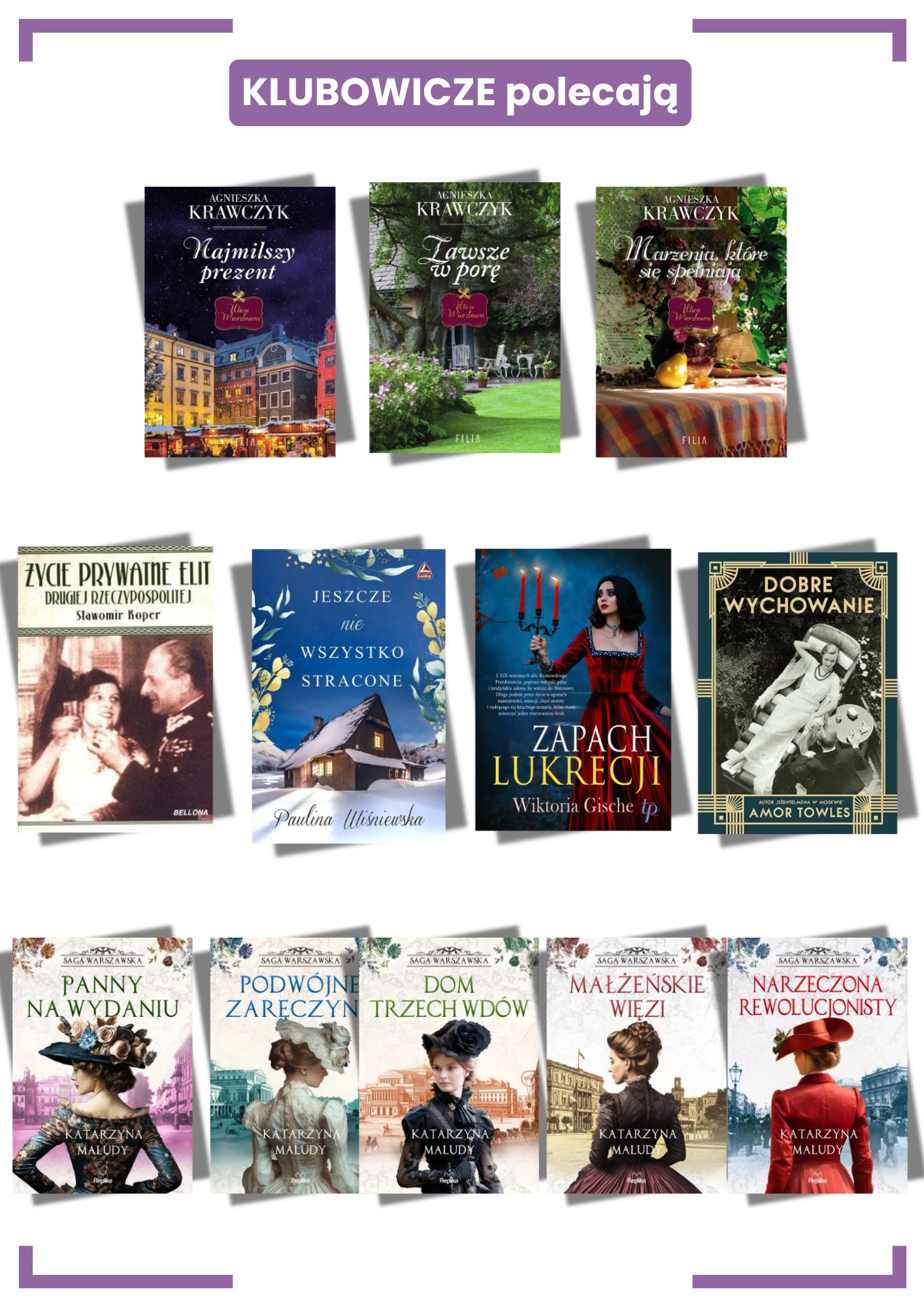 Danusia zapoznała nas z książką „Moje własne Notting Hill” Agnieszki Olejnik. Mila, tłumaczka języka angielskiego, wiedzie spokojne życie, aż ekscentryczna babcia Lili zabiera ją w podróż do Londynu, odmieniając jej codzienność. Powieść opowiada o marzeniach, odwadze i odnajdywaniu siebie.