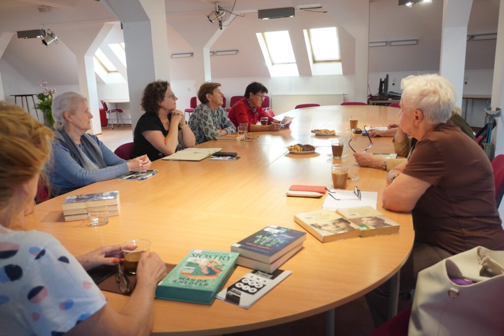 Na kolejne spotkanie Dyskusyjnego Klubu Książki przybyło dziesięć osób. Czas upłynął w serdecznej, swobodnej atmosferze. Rozmowy toczyły się nie tylko wokół bieżących wydarzeń na świecie, lecz także wspomnień z ostatnich wycieczek, na które wybrały się klubowiczki. Uczestniczki z entuzjazmem dzieliły się wrażeniami z podróży, opowiadając o ciekawych miejscach i inspirujących ludziach, których spotkały. Dyskusja tętniła pozytywną energią i stała się zachętą do kolejnych spotkań.